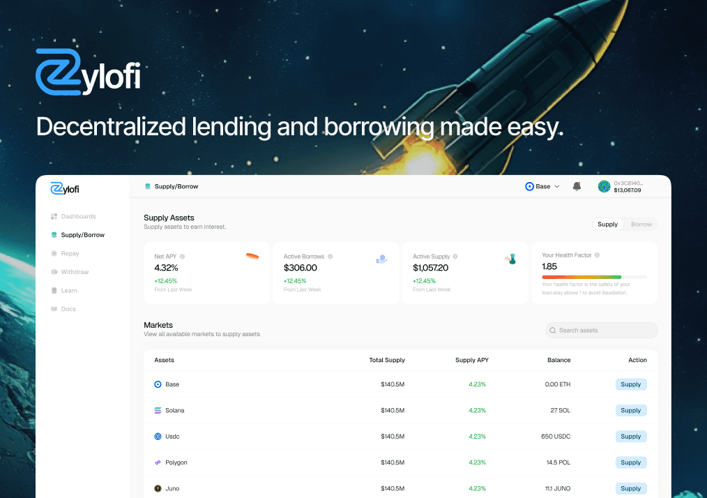 Lending and borrowing made easy via Zylofi making crypto-backed loans simple, transparent, and accessible.