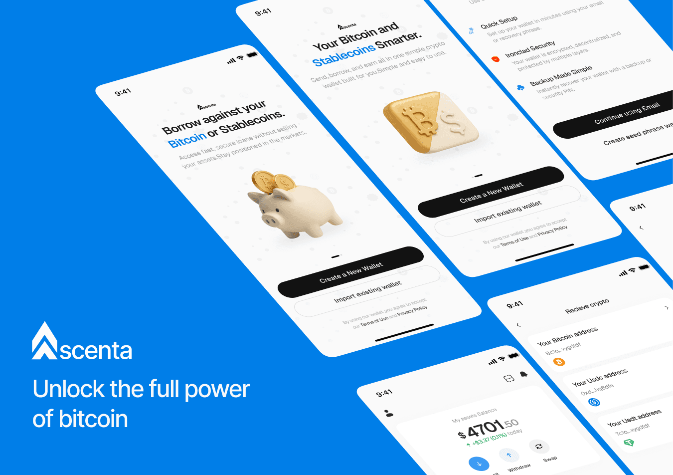 A friendly wallet experience for ascenta wallet making sending, receiving, and managing Bitcoin effortless for everyday users.